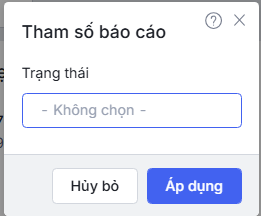 phía bên phải tên báo cáo\Chọn tham số báo cáo\Nhấn Áp dụng.