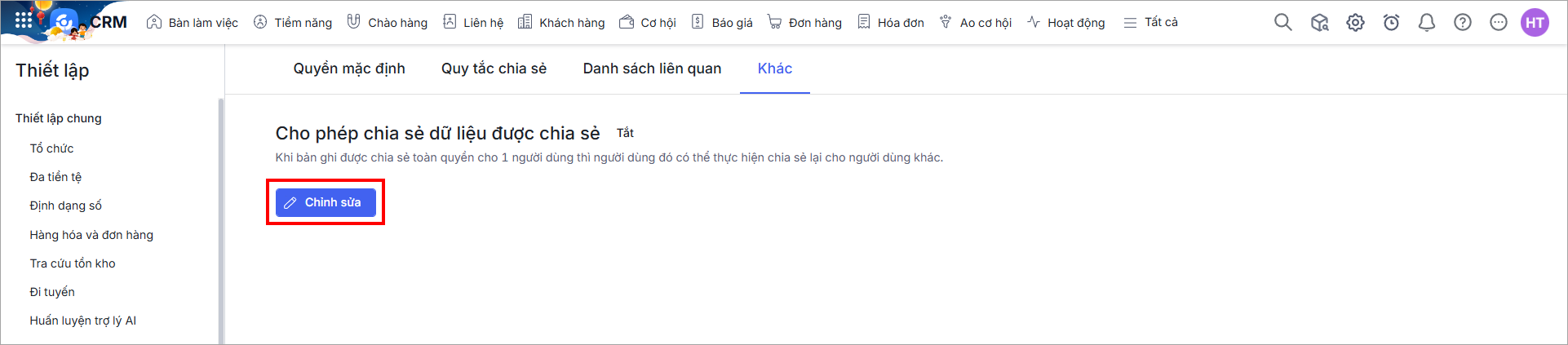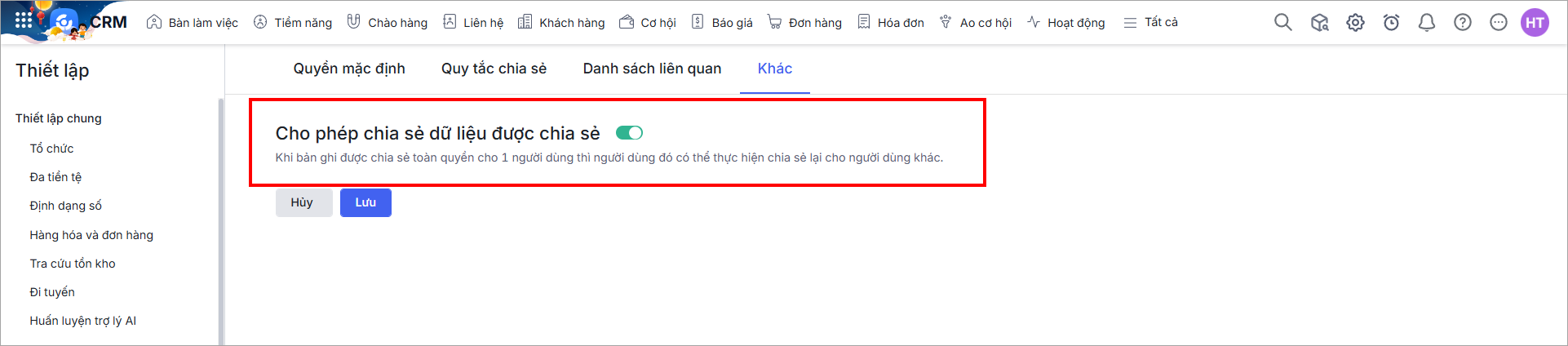 Lưu ý: Các bản ghi được thêm/sửa trên AMIS Kế toán và đồng bộ về AMIS CRM nếu thỏa mãn điều kiện cũng sẽ được áp dụng quy tắc chia sẻ.