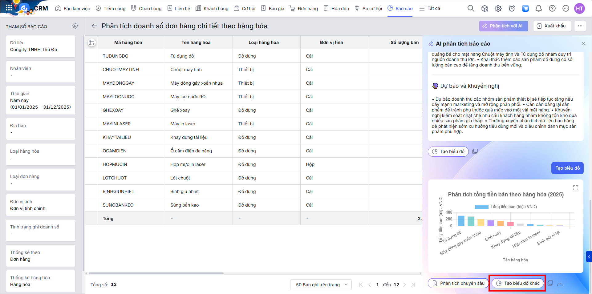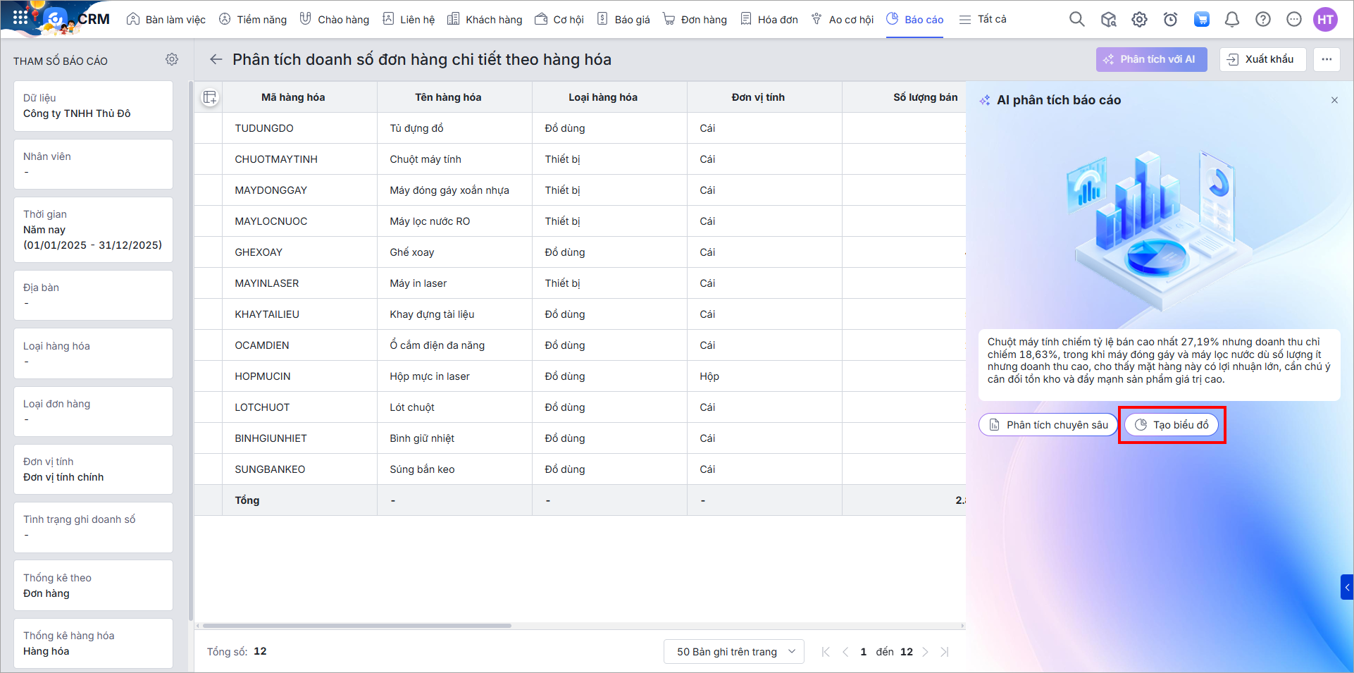 Ở giao diện AI phân tích báo cáo, nhấn Tạo biểu đồ.