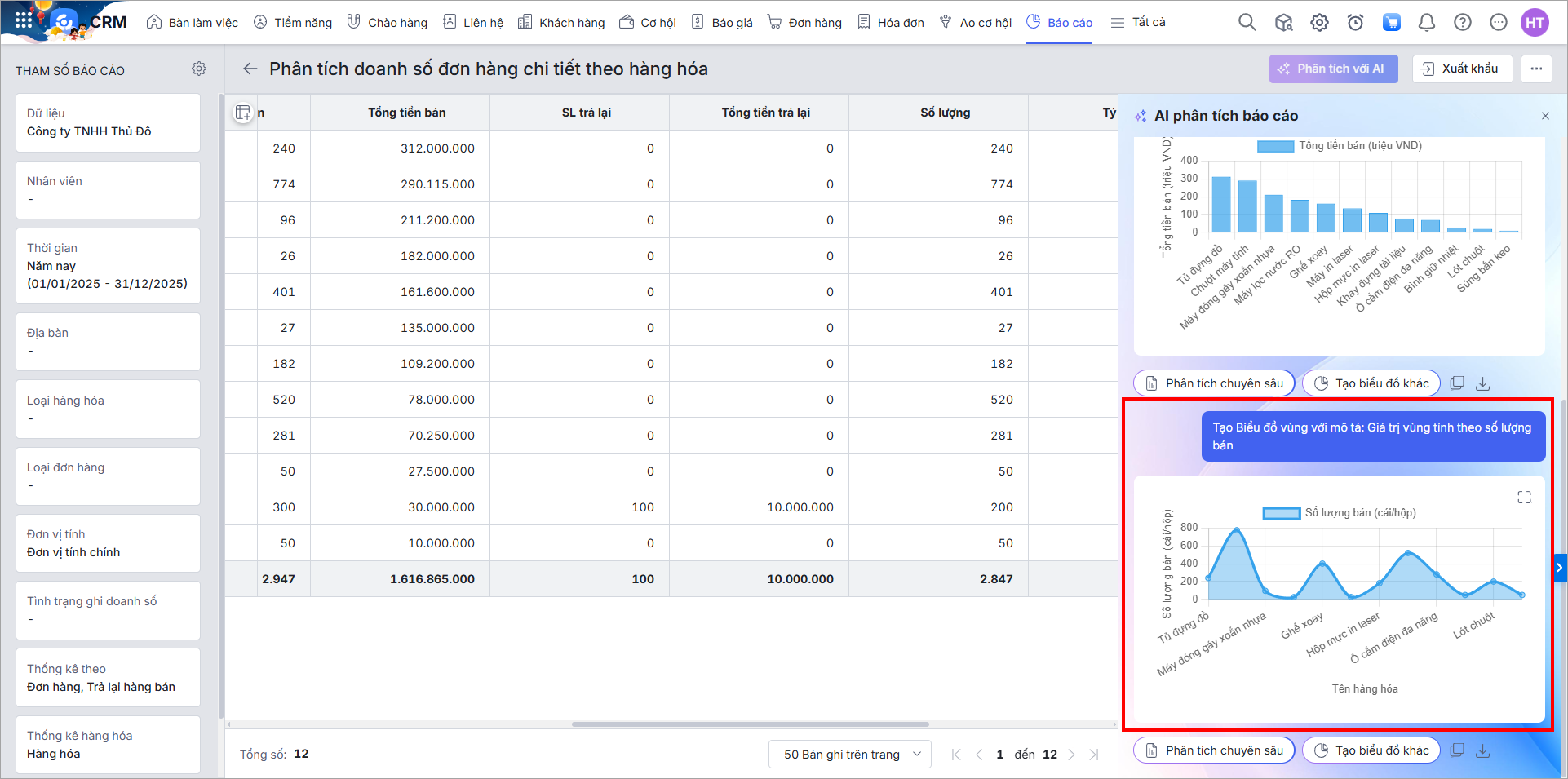 AI sẽ tạo 1 biểu đồ trực quan hóa báo cáo dữ liệu báo cáo.