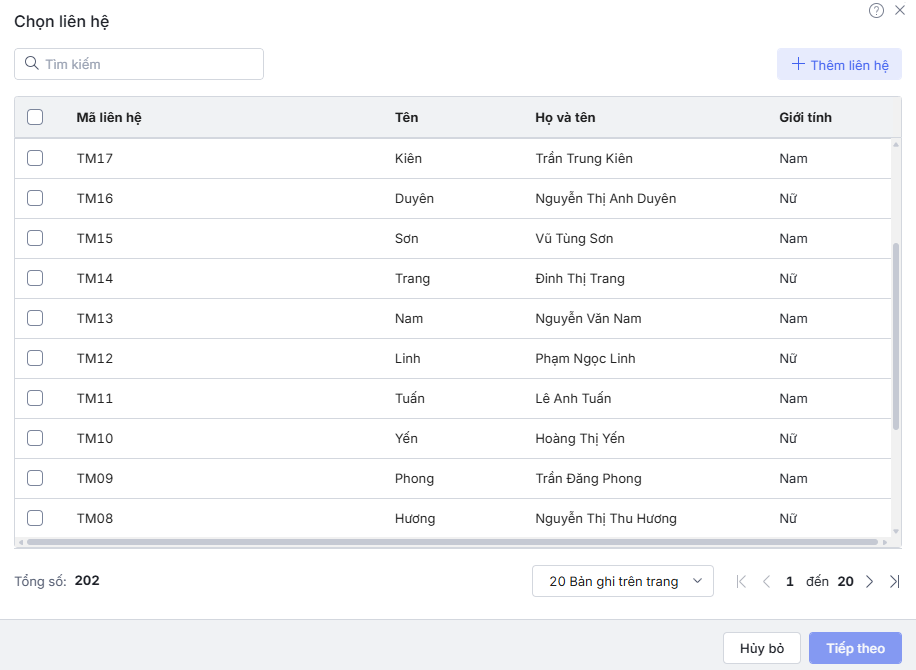 - Tùy chỉnh hiển thị, sắp xếp, lọc và tìm kiếm thông tin khách hàng trong Chào hàng