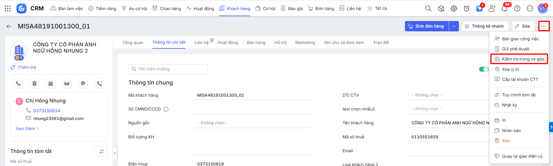 2.4. Kiểm tra trùng và gộpGiúp lọc và gộp các bản ghi Khách hàng có trùng thông tin. Xem hướng dẫn thực hiện chi tiết tại đây.