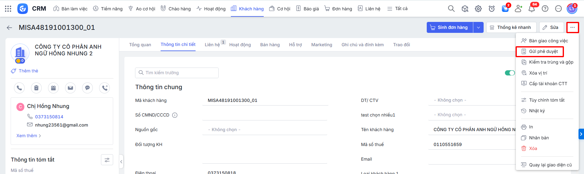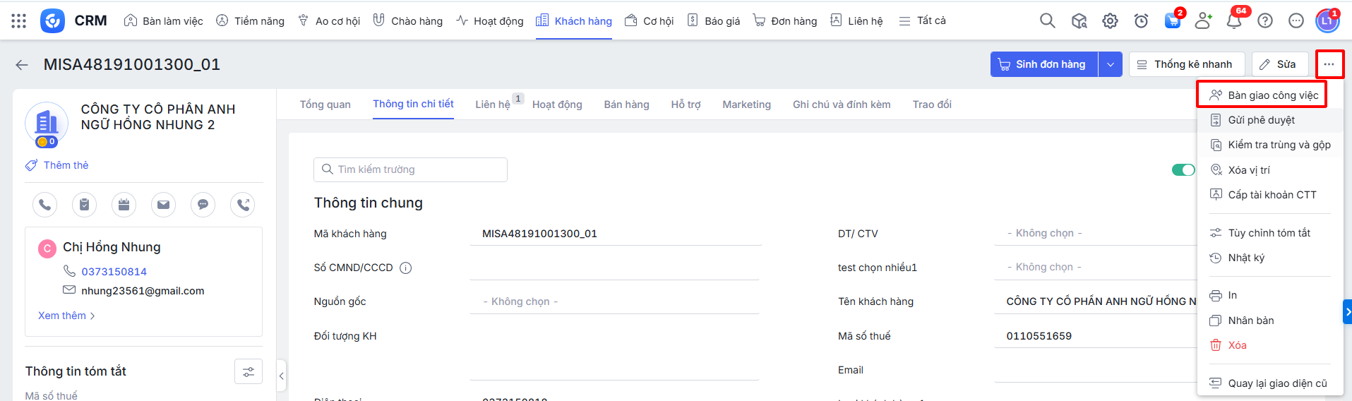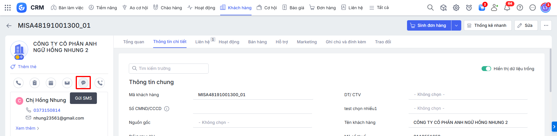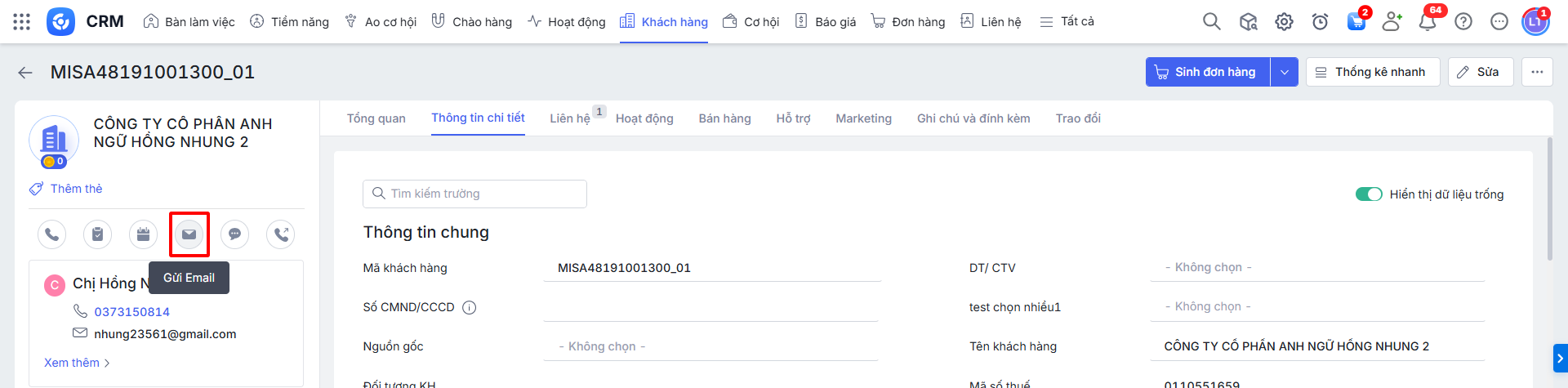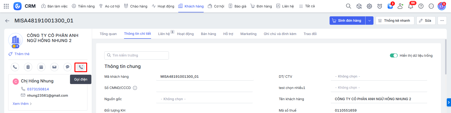 2. Hướng dẫn thực hiện chức năng chi tiết bản ghi Khách hàng