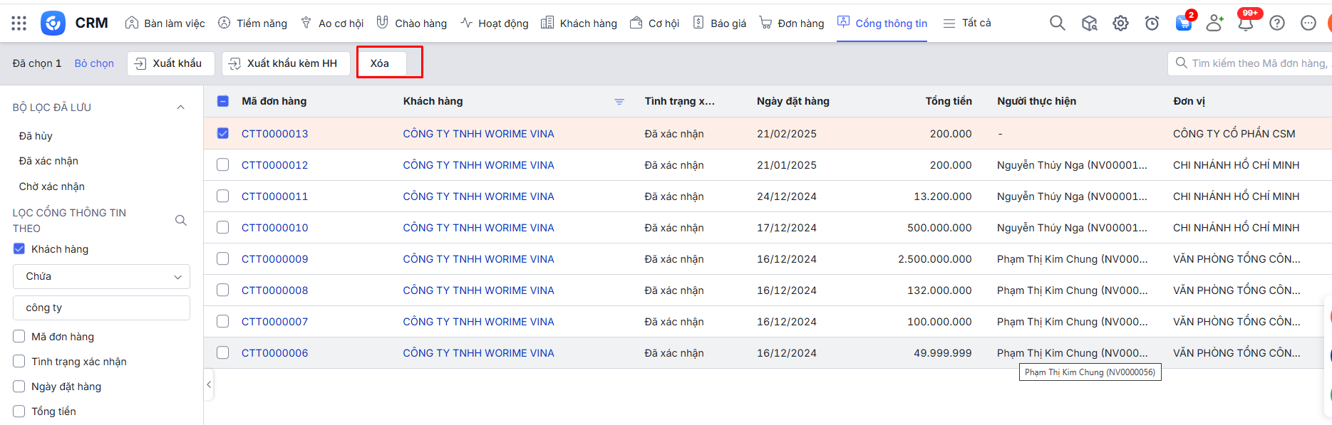 - Quy trình xóa đơn hàng: xóa từng đơn hoặc hàng loạt với điều kiện phù hợp