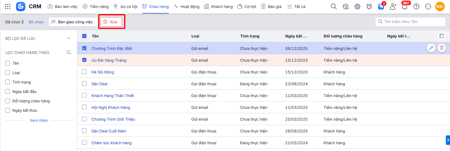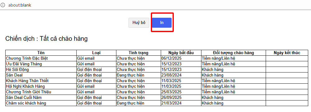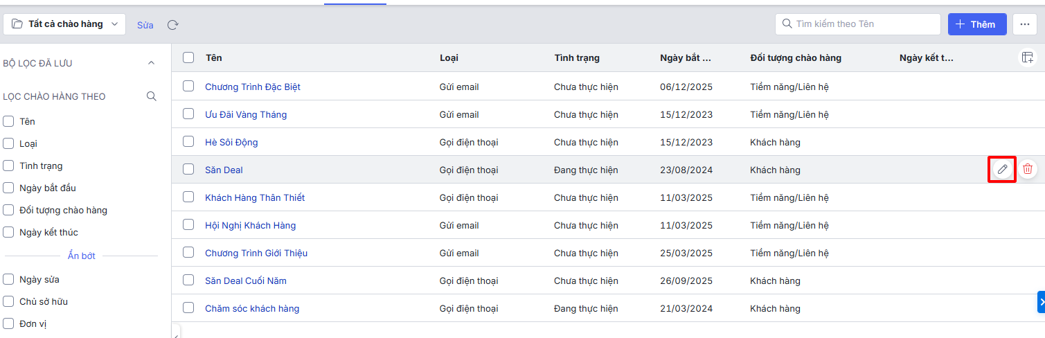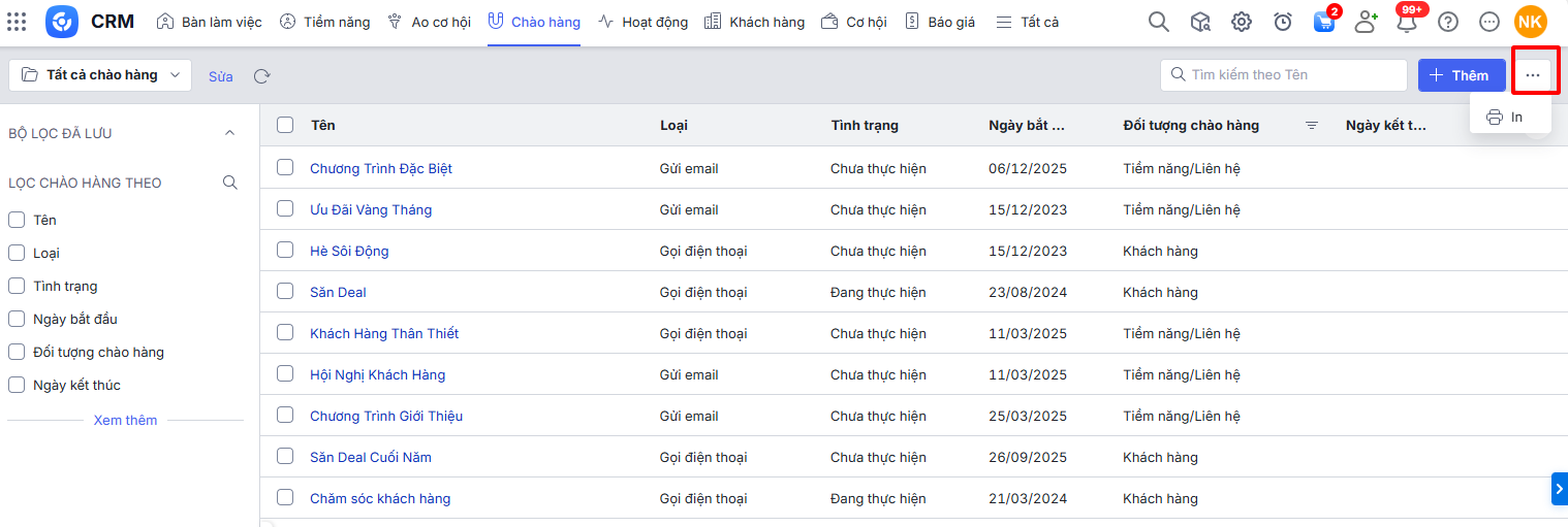 - Sắp xếp, tìm kiếm, sửa thông tin và in hàng loạt danh sách Chào hàng