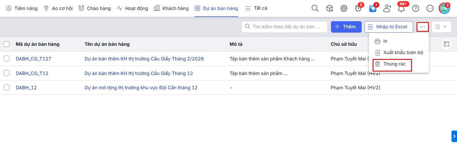 Bài viết hướng dẫn cách quản lý, theo dõi và thao tác với danh sách Dự án bán hàng trên AMIS CRM. Việc này giúp kiểm soát tổng thể các dự án, dễ dàng tìm kiếm, chỉnh sửa, xuất khẩu, in ấn hoặc phục hồi/xóa các bản ghi dự án.