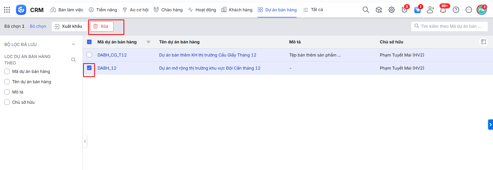 Bài viết hướng dẫn cách quản lý, theo dõi và thao tác với danh sách Dự án bán hàng trên AMIS CRM. Việc này giúp kiểm soát tổng thể các dự án, dễ dàng tìm kiếm, chỉnh sửa, xuất khẩu, in ấn hoặc phục hồi/xóa các bản ghi dự án.