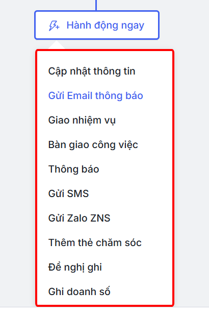 ∎ Hành động ngay: Chọn hành động thiết lập: