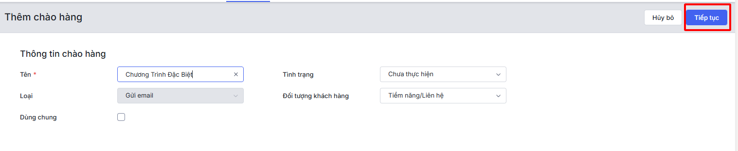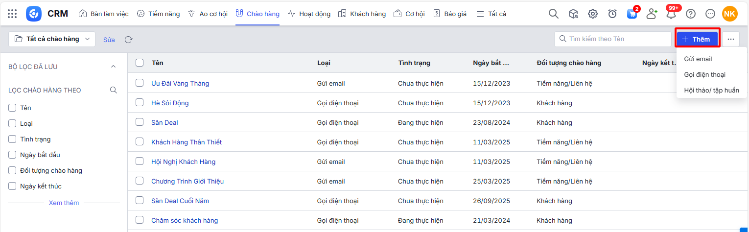 - Các bước thêm mới chào hàng và lựa chọn hình thức chào hàng