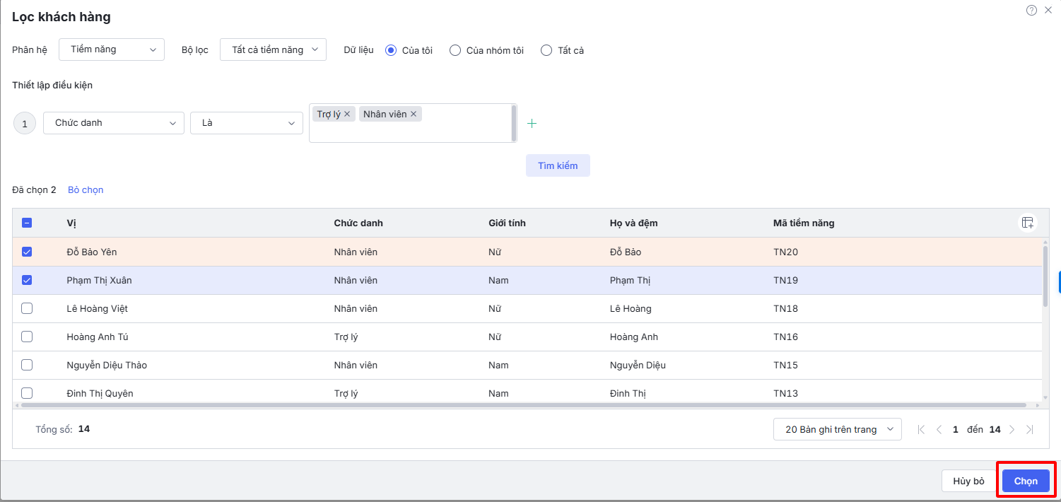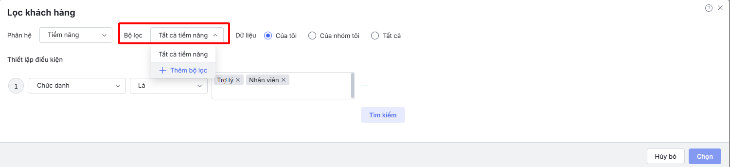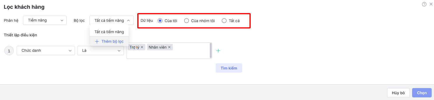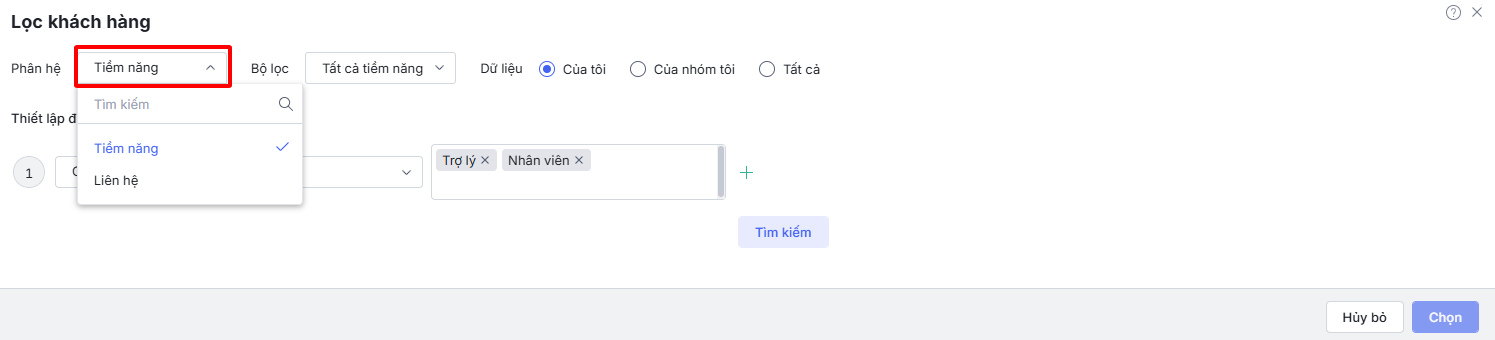 - Hướng dẫn chọn và lọc khách hàng từ các nguồn: Tiềm năng, Liên hệ, Khách hàng