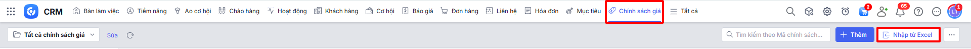 Vào phân hệ Chính sách giá \ nhấn chọn Nhập từ excel. Xem hướng dẫn chi tiết thao tác nhập khẩu tại đây. |