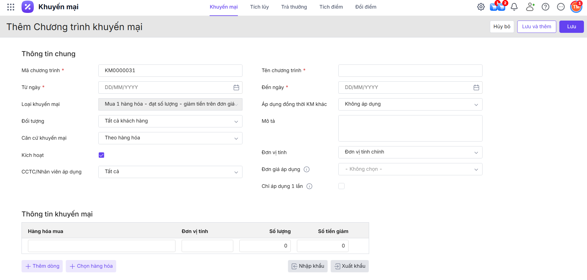 Bước 6: Nhấn Lưu để hoàn thành thêm mới chương trình khuyến mại.