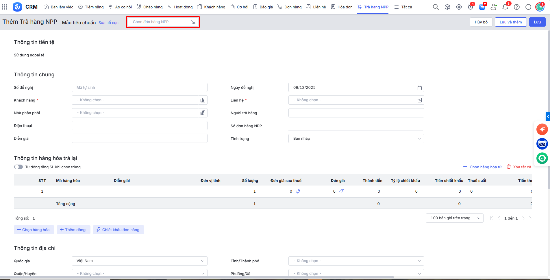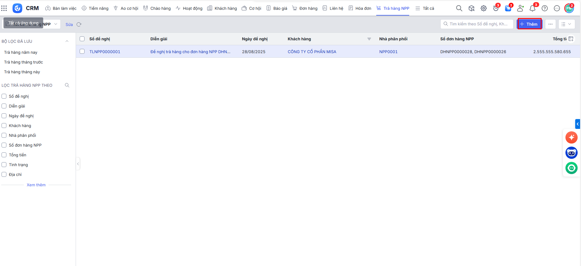 Bài viết hướng dẫn cách tạo Đề nghị trả hàng NPP trên AMIS CRM, hỗ trợ NVKD ghi nhận việc khách hàng trả lại hàng hóa đã mua từ Nhà phân phối. Chức năng giúp doanh nghiệp theo dõi hoạt động kinh doanh tại kênh phân phối một cách chính xác và thuận tiện.