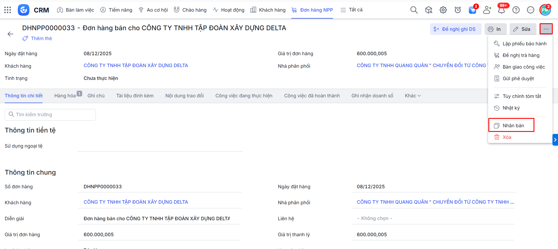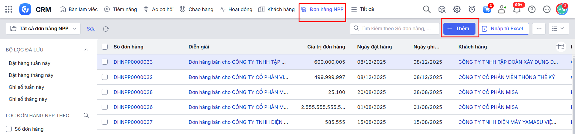Bài viết hướng dẫn về chức năng quản lý Đơn hàng Nhà phân phối (NPP) trên AMIS CRM, hỗ trợ ghi nhận, theo dõi các đơn hàng mà NPP bán cho đại lý, cửa hàng. Việc này giúp doanh nghiệp kiểm soát tình hình bán hàng của NPP, tối ưu hoạt động phân phối mà không ảnh hưởng đến doanh thu công ty.