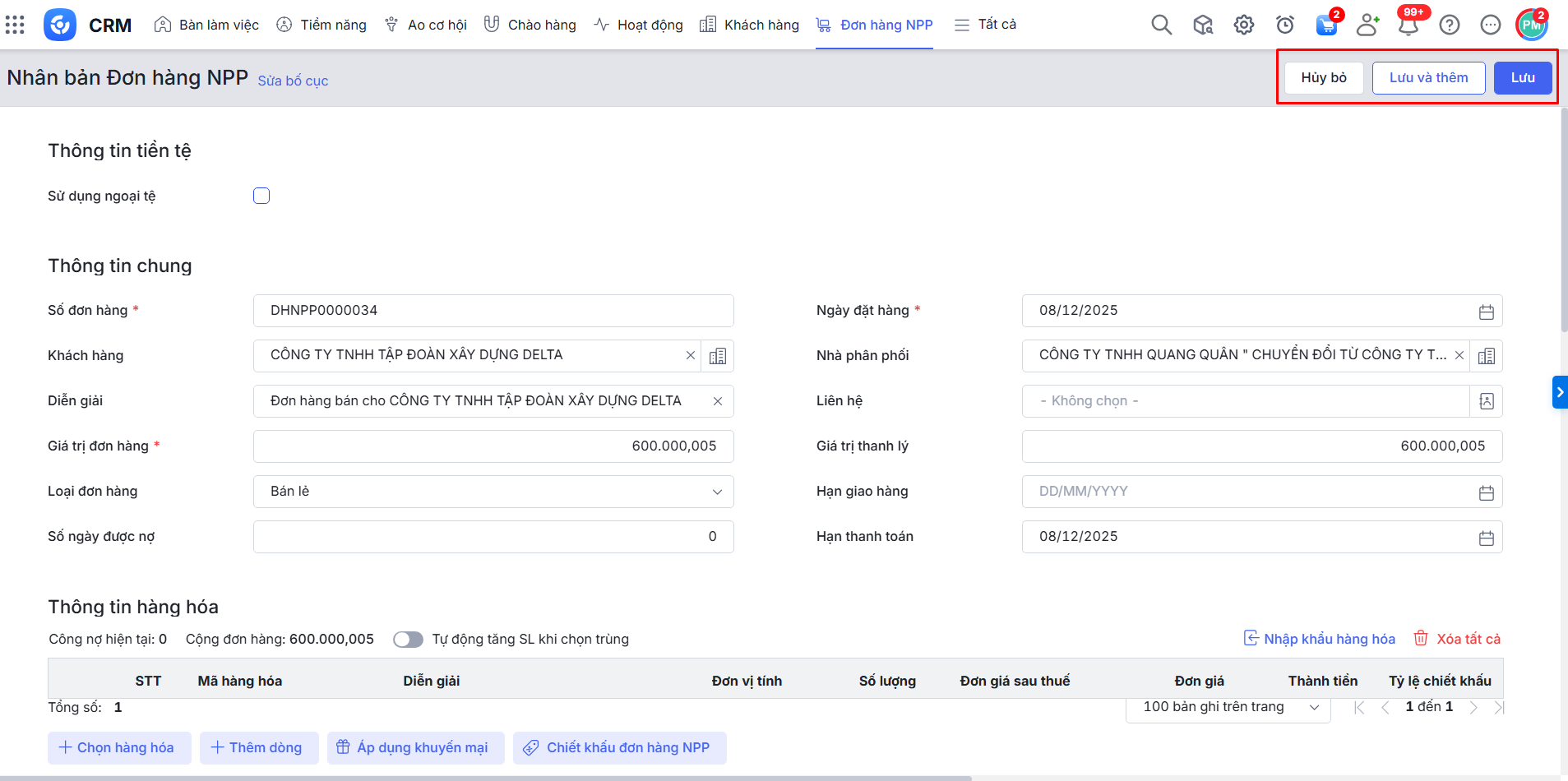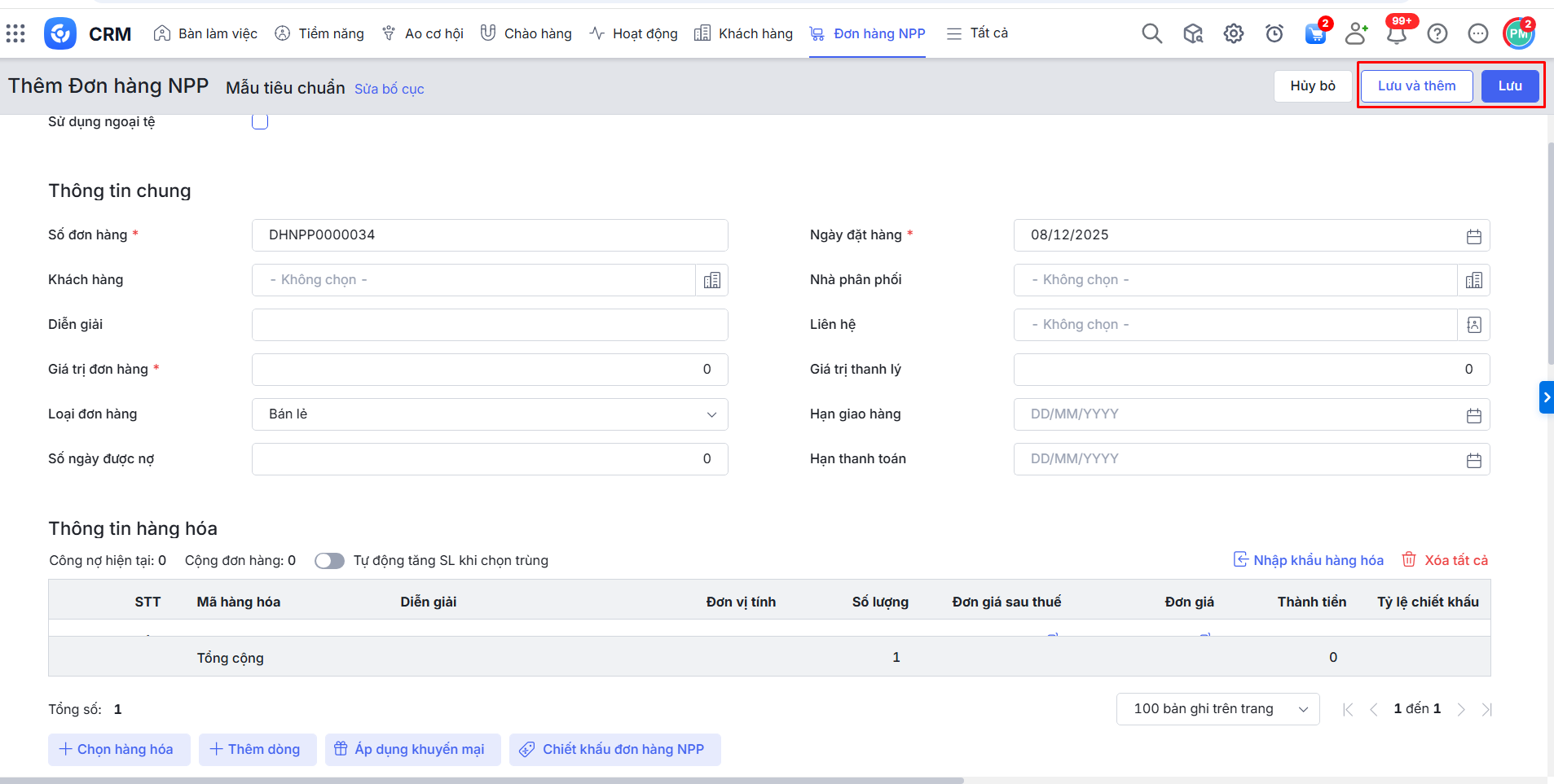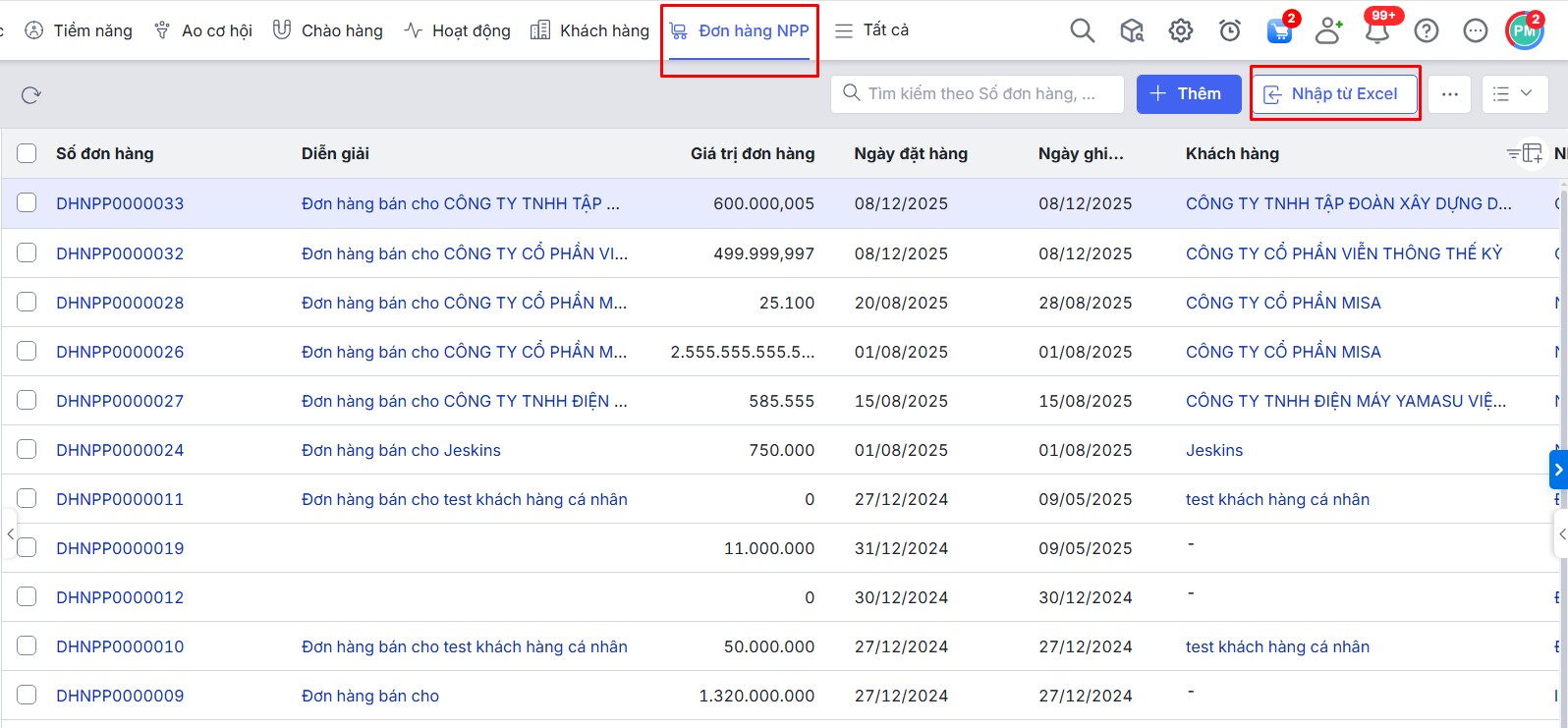 - Thêm mới Đơn hàng NPP (nhập mẫu, nhân bản, nhập khẩu hàng loạt).
