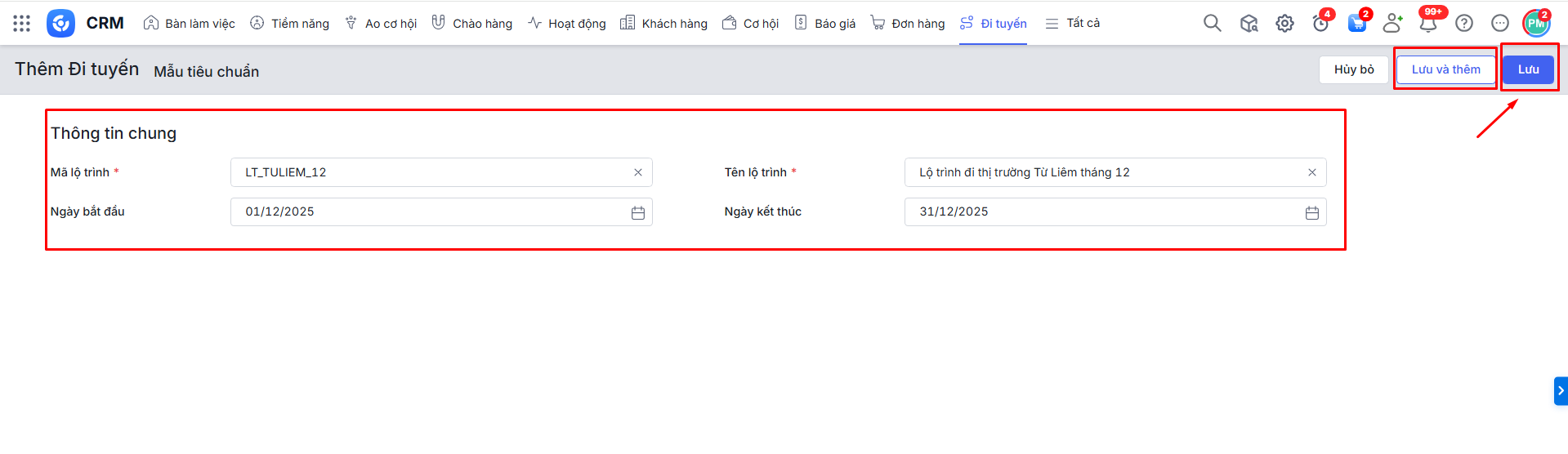 Nhấn Lưu để hoàn thành chọn danh sách khách hàng của lộ trình.