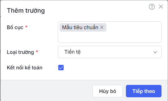 2.2. Thêm trường dạng Tiền tệ kết nối kế toán