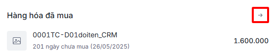 Bước 1: Ở chi tiết bàn ghi Khách hàng (giao diện mới) \ tab Tổng quan mục Hàng hóa đã mua hiển thị thông tin Ngày đặt hàng gần nhất và Số ngày chưa mua của từng hàng hóa.