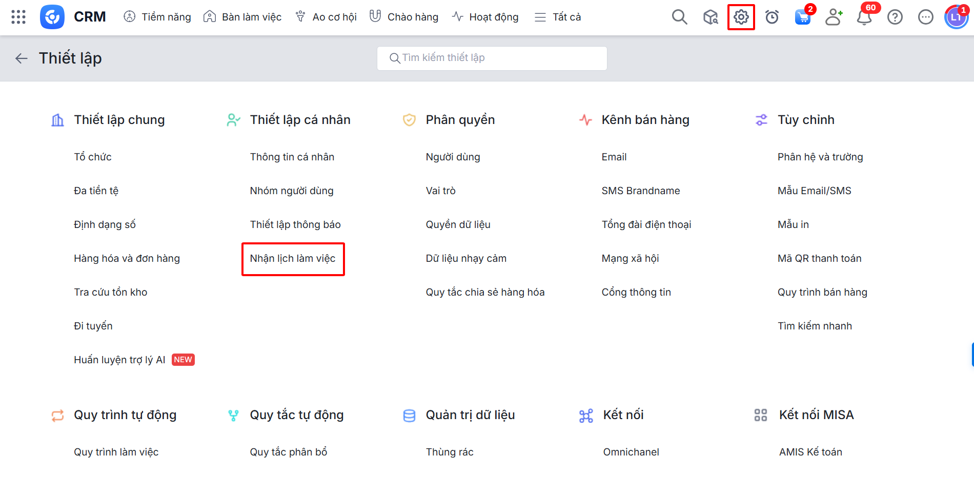Cấu hình nhận lịch làm việc từ ứng dụng bên ngoài