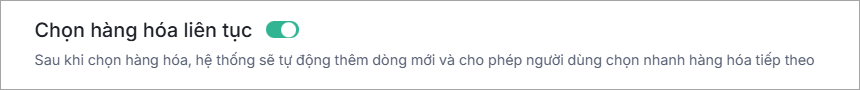 Bước 2: Bật lựa chọn Chọn hàng hóa liên tục.