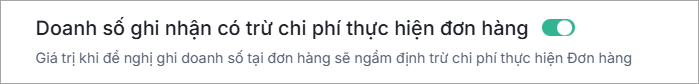 Bước 2: Bật lựa chọn Doanh số ghi nhận có trừ chi phí thực hiện đơn hàng.