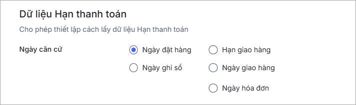 Bước 2: Tại mục Hạn thanh toán, chọn ngày làm căn cứ tính dữ liệu Hạn thanh toán của đơn hàng.