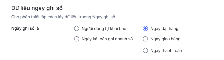 Bước 2: Tại mục Dữ liệu Ngày ghi sổ, chọn cách lấy dữ liệu cho trường thông tin Ngày ghi sổ của đơn hàng theo nhu cầu.