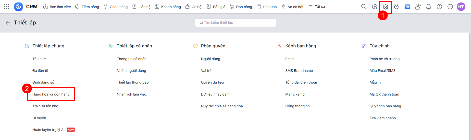 Bài viết hướng dẫn thiết lập chung về hàng hóa và đơn hàng.
