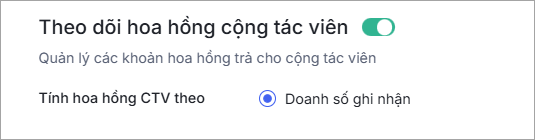Bước 2: Bật lựa chọn Theo dõi hoa hồng cộng tác viên.
