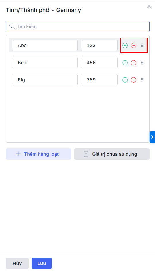 Bước 4: Nhập tên các Tỉnh/Thành phố của Quốc gia đã chọn\ Giữa các giá trị sử dụng Enter để ngăn cách.