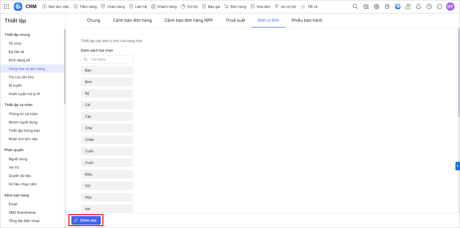 Bài viết hướng dẫn cách thiết lập danh sách đơn vị tính của hàng hóa trên AMIS CRM nhằm hỗ trợ người dùng quản lý đơn vị tính một cách hiệu quả