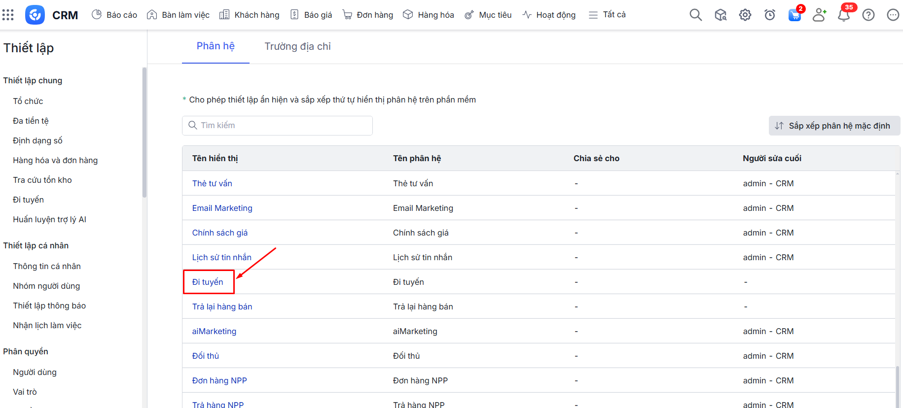 Bước 1: Click chuột vào phân hệ Đi tuyến.