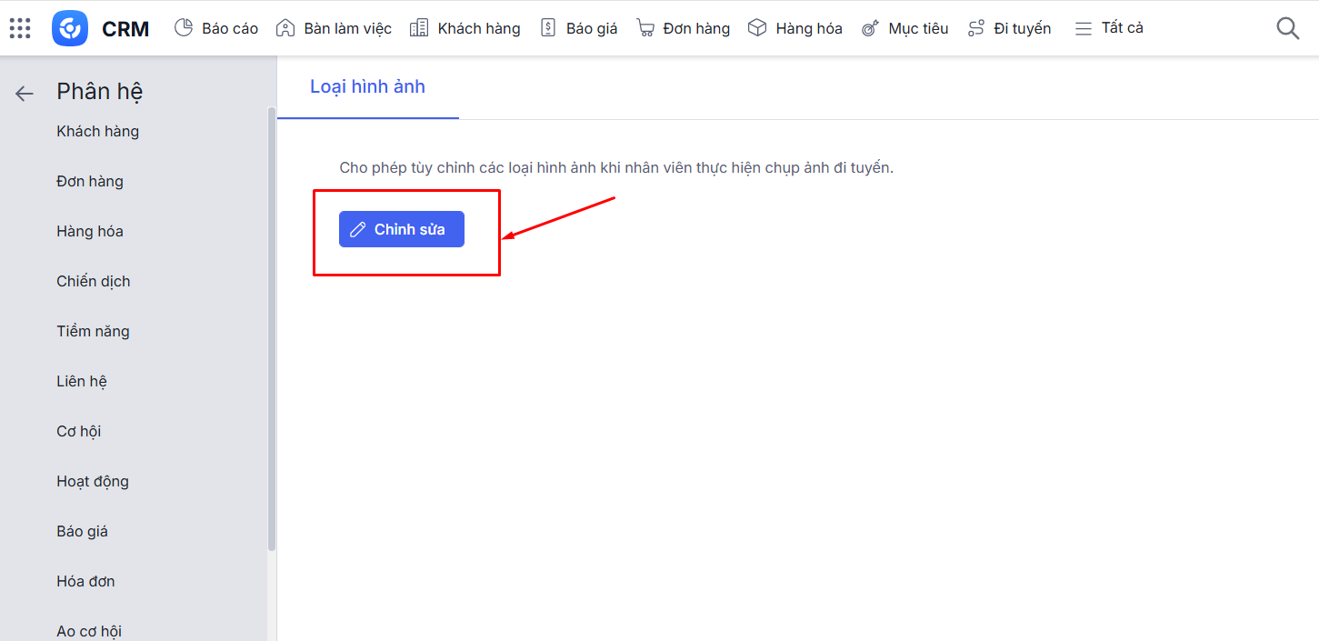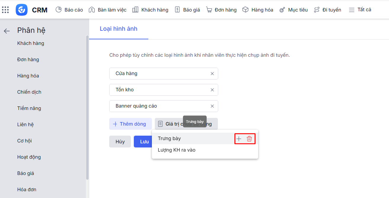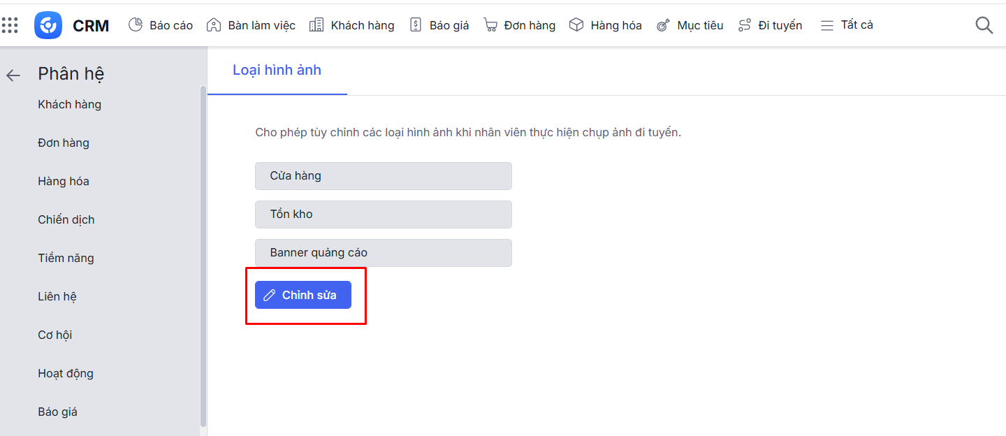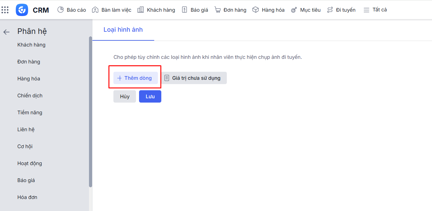 - Truy cập thiết lập Loại hình ảnh trong phân hệ Đi tuyến.