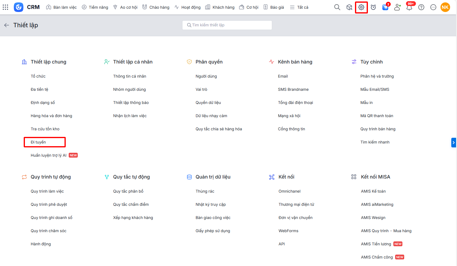 - Thiết lập đồng bộ vị trí trên AMIS CRM (phiên bản Web)