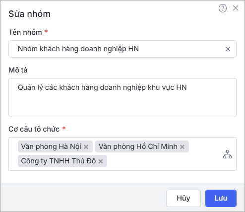 Để sửa thông tin nhóm cơ cấu tổ chức, anh/chị thực hiện theo 1 trong 2 cách sau: