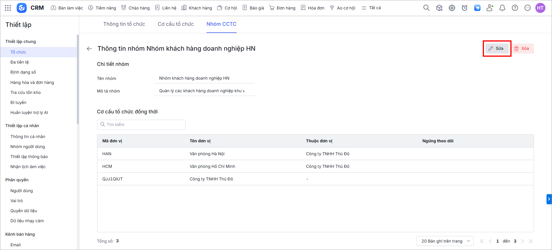 • Có thể vào chi tiết nhóm CCTC, nhấn Sửa.