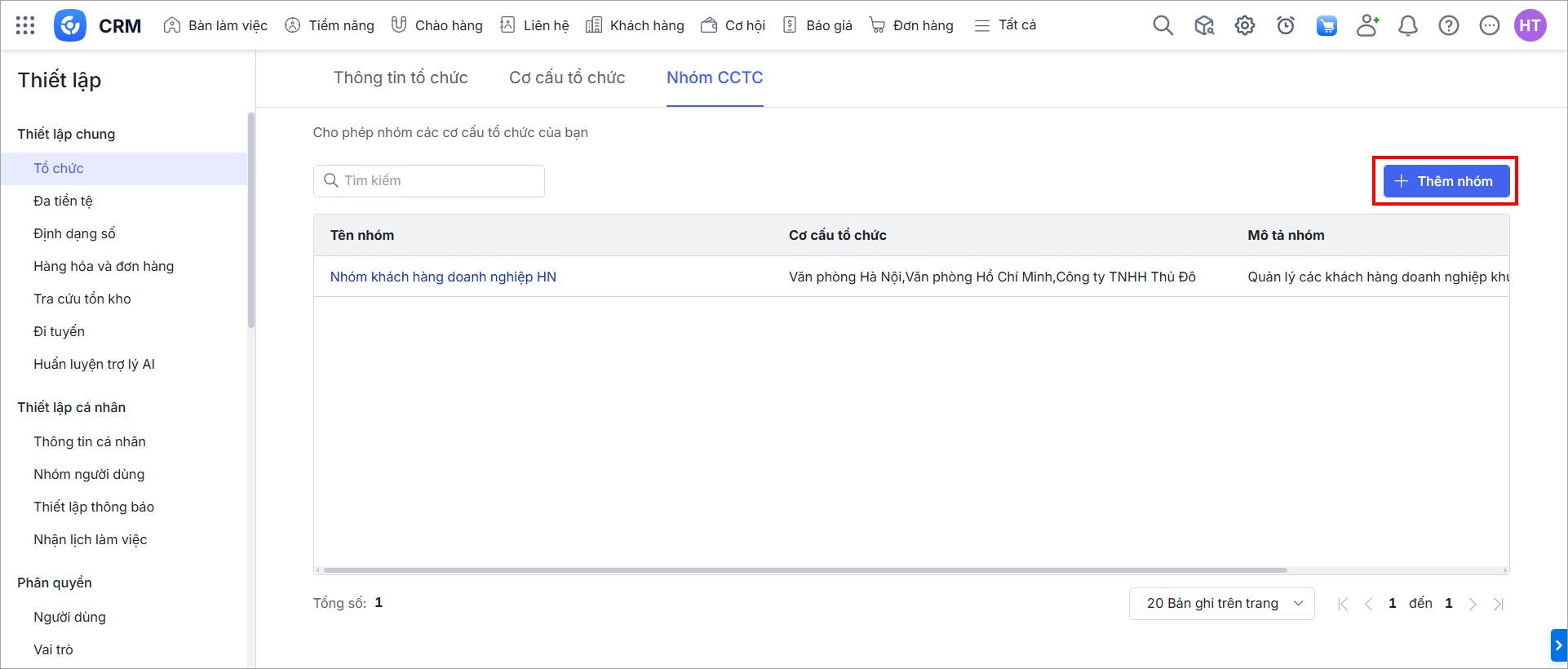 Bước 1: Tại tab Nhóm CCTC, nhấn Thêm nhóm.