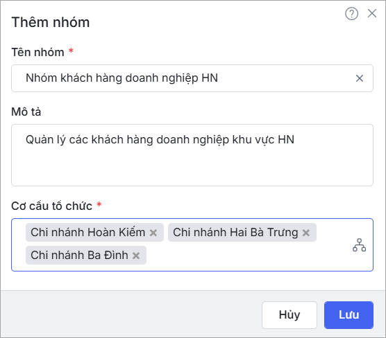 Bước 2: Khai báo các thông tin chi tiết: Tên nhóm, Mô tả, Cơ cấu tổ chức trong nhóm.