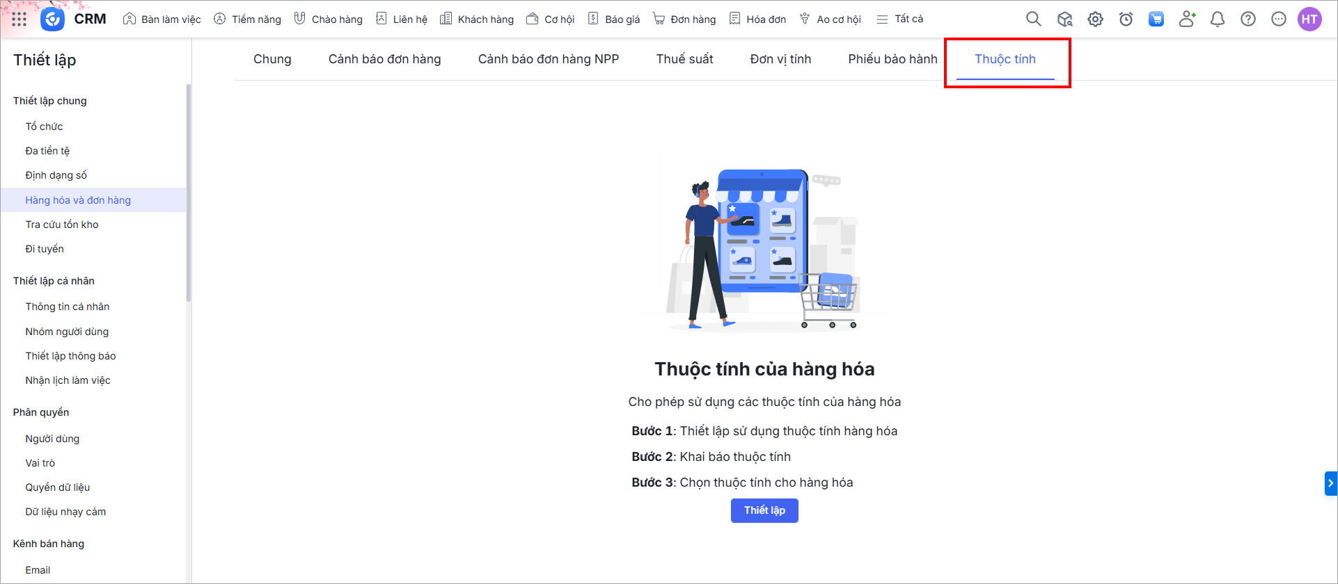 Thiết lập Thuộc tính của hàng hóa