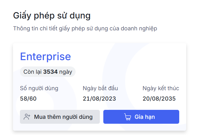 - Mua thêm người dùng: là chức năng cho phép doanh nghiệp tăng số lượng tài khoản sử dụng AMIS CRM so với gói dịch vụ hiện tại.