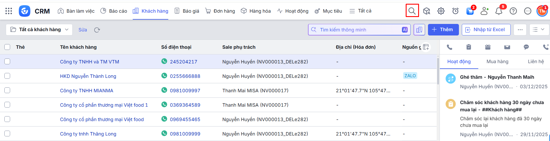 Bước 1: Trên AMIS CRM\Nhấn vào biểu tượng kính lúp