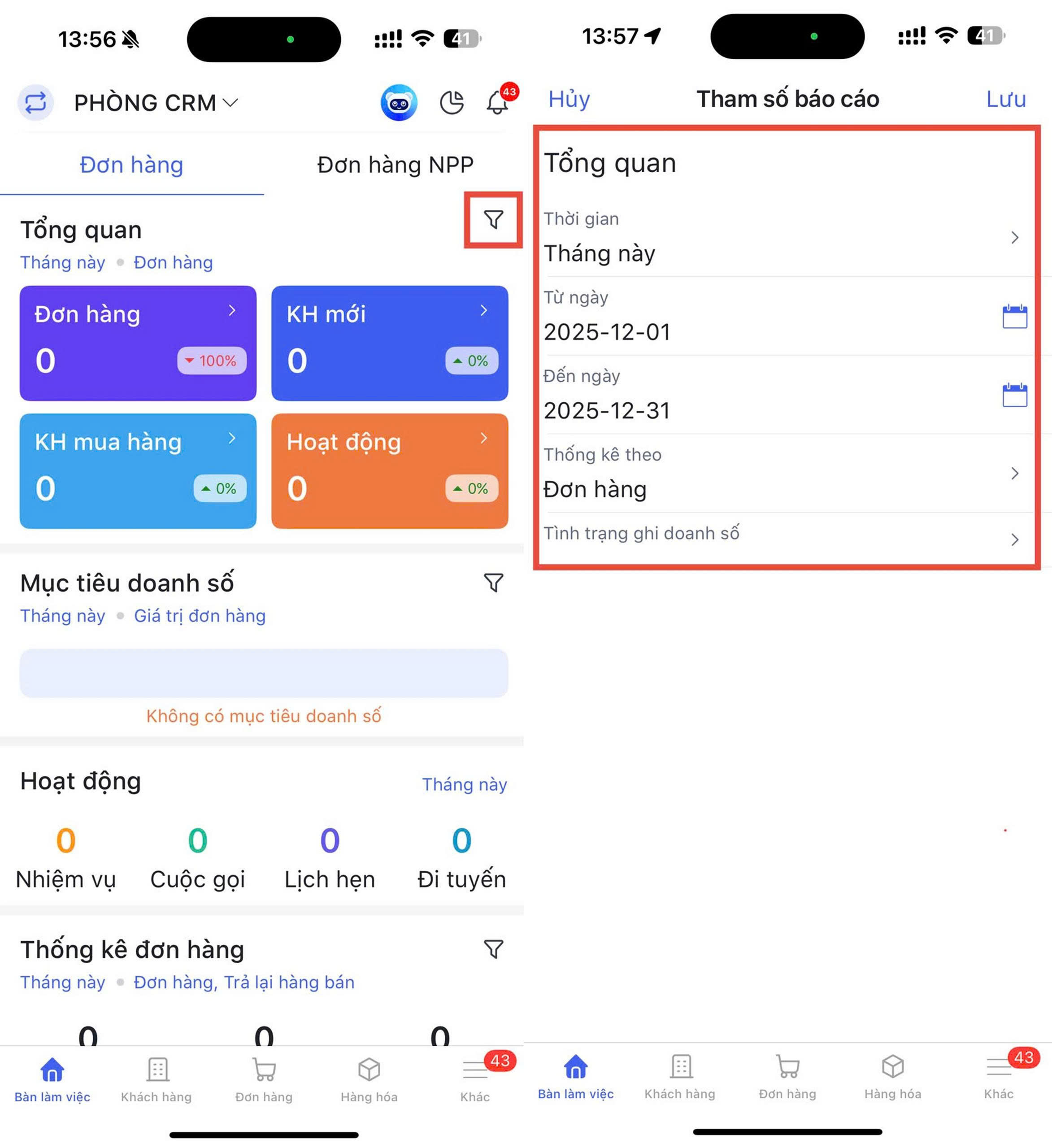 Bước 2: Nhấn vào biểu tượng cái phễu → thiết lập điều kiện lọc → nhấn Lưu để cập nhật báo cáo.