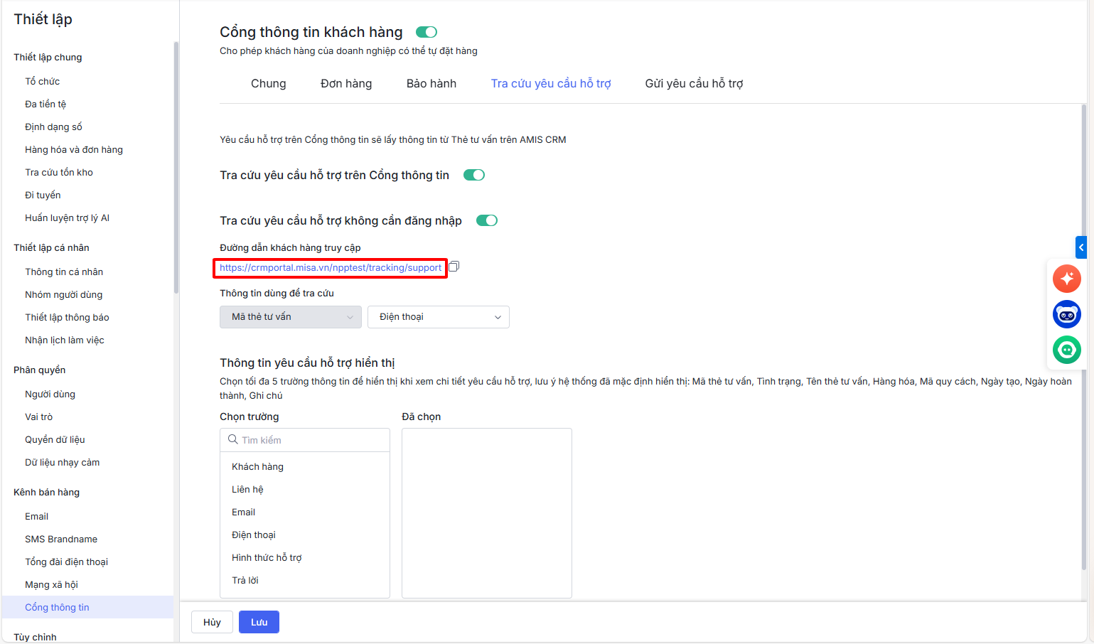 Bài viết hướng dẫn tra cứu yêu cầu hỗ trợ trên Cổng thông tin, từ việc thiết lập tính năng trong AMIS CRM cho đến các thao tác tra cứu chi tiết dành cho Đại lý/Nhà phân phối. Việc này cho phép chủ động tra cứu và theo dõi tình trạng xử lý yêu cầu giúp tăng cường tính minh bạch, giúp khách hàng nắm bắt thông tin kịp thời và phối hợp hiệu quả với bộ phận hỗ trợ của doanh nghiệp.