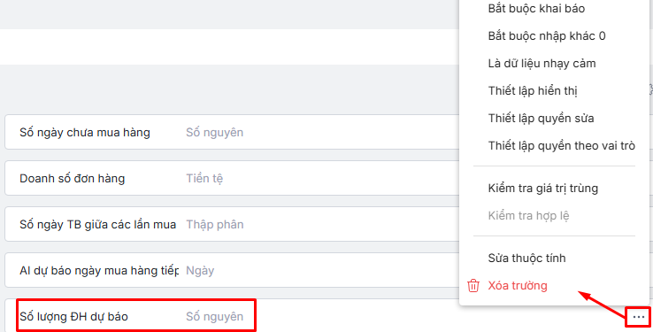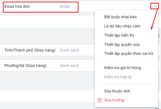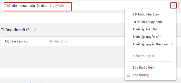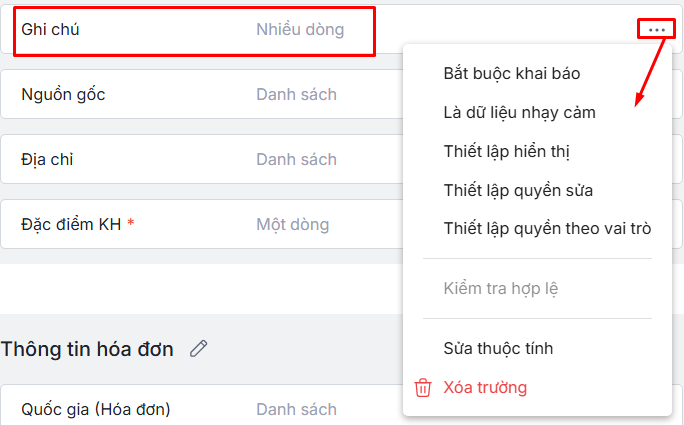 - Là dữ liệu nhạy cảm: Nhấn chọn để thiết lập trường thông tin là trường dữ liệu nhạy cảm.