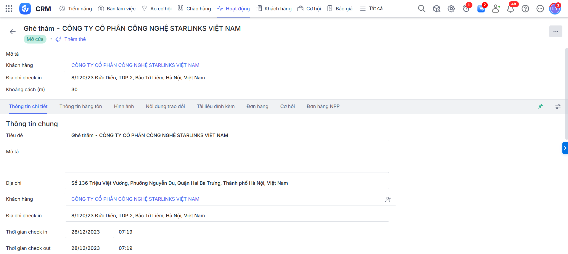 Hướng dẫn xem nhanh chi tiết lịch sử giao dịch với khách hàng trên tab Hoạt động. Nội dung bao gồm cách truy cập và xem thông tin chi tiết từng hoạt động. Áp dụng cho người dùng cần theo dõi tương tác với khách hàng trong hệ thống.
