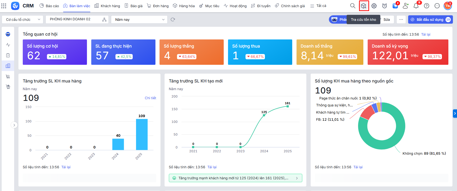 Bước 1: Trên AMIS CRM, nhấn biểu tượng tra cứu kho