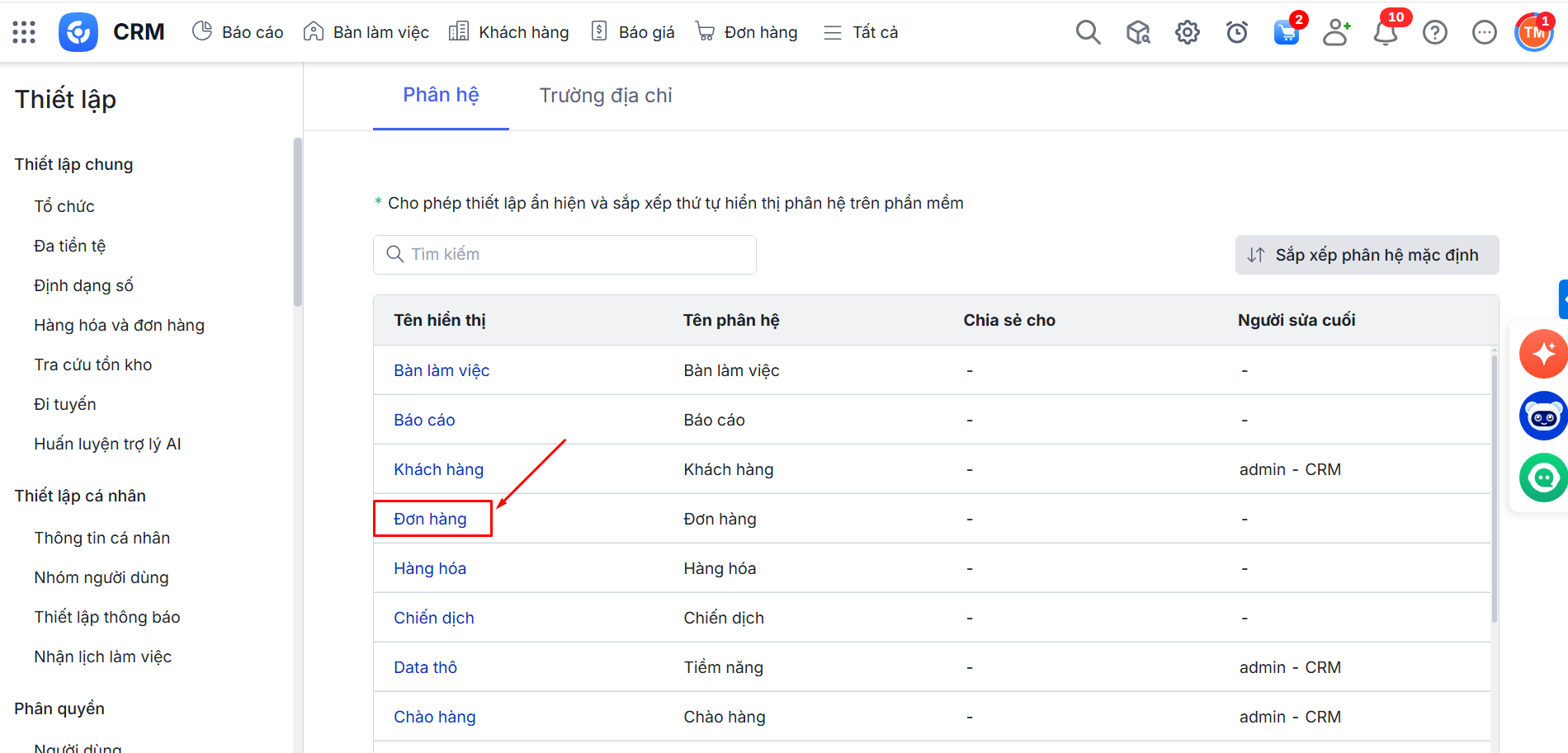 Bước 2: Nhấn chuột chọn phân hệ Đơn hàng.