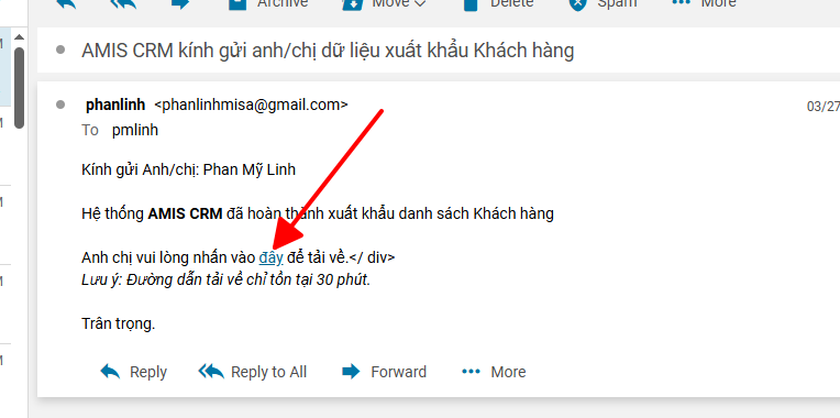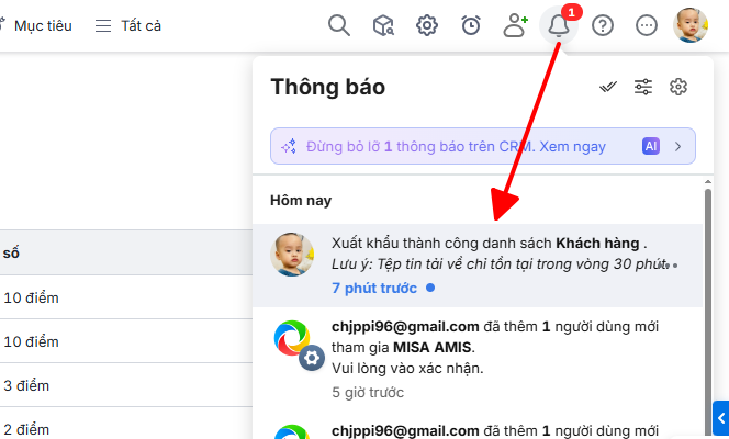 Bước 4: Nhấn vào thông báo ở quả chuông trên phần mềm hoặc mở email để tải về tệp tin xuất khẩu.
